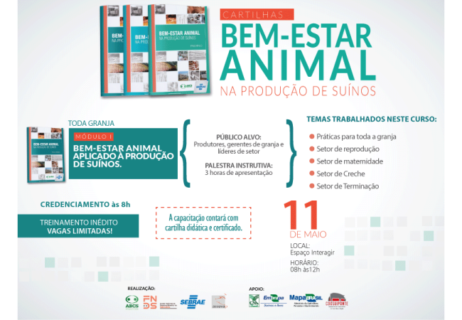 Na programação, serão apresentados parâmetros de manejo nas granjas, climatização, alimentação e demais práticas de produção, maternidade, creche e terminação. De acordo com o palestrante, o curso mostra que é possível desenvolver boas práticas de manejo sem grandes investimentos em tecnologia, “mas sim com mudança de conduta e atenção”. Iuri Pinheiro acrescenta que os métodos também podem ser lucrativos. “Além de se oferecer o bem-estar propriamente dito é possível obter benefícios econômicos. Trata-se de uma nova postura com maior atenção às questões de manejo, instalações e ambiência”, completou.