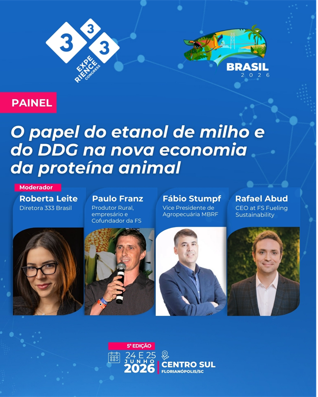 Neste painel, teremos Paulo Franz, Fabio Duarte Stumpf e Rafael Abud, moderados por Roberta Leite. Será discutido como o DDG e o etanol de milho estão redesenhando a dinâmica de custos e competitividade na produção animal. 🎯